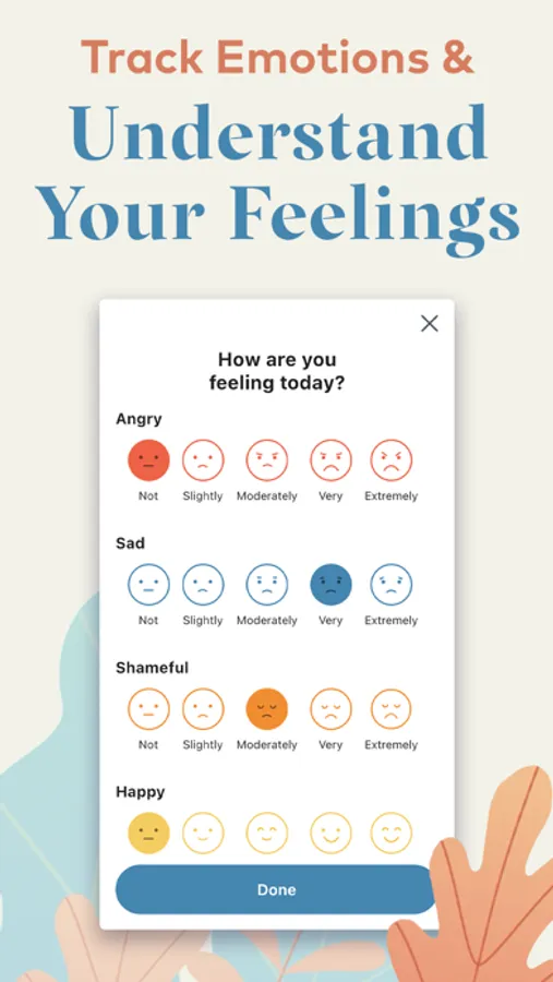 Not sure where to start? Pick from the emotion wheel and explore new ways to process and understand that emotion more deeply. Every emotion you select takes you through a series of guided sessions, written, delivered and approved by experienced mental health care professionals.