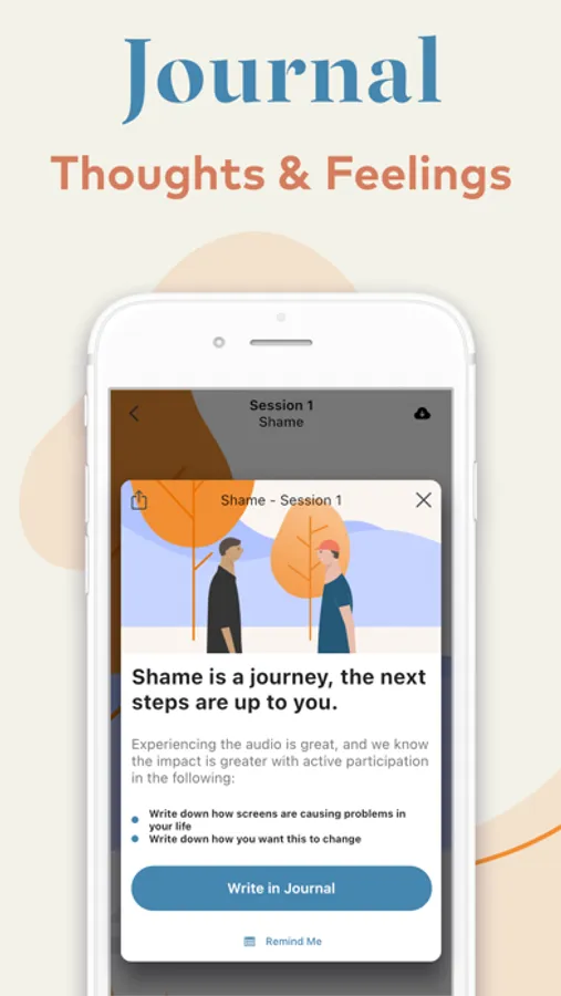 Empifany allows you to journal your experiences and emotions right in the app. Each session will prompt you to think about what was discussed and jot some feelings or notes down in your Empifany Journal. Entries are automatically dated and can be edited at any time, so if something notable happens after your initial entry or you listen to another session later that day, you can add it to that day’s entry.