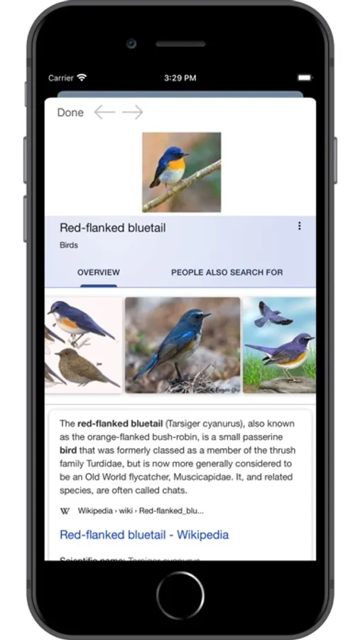It identifies birds using state-of-the-art AI techniques. The algorithms runs locally on your device and your images do not leave your device.