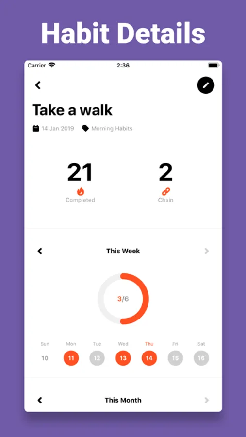 • You can view the daily status of your goals with a weekly or monthly calendar.