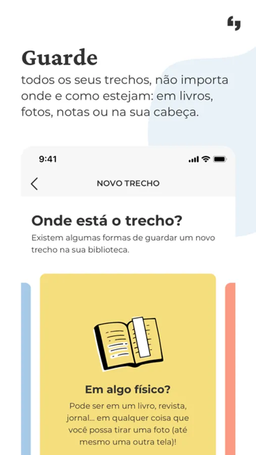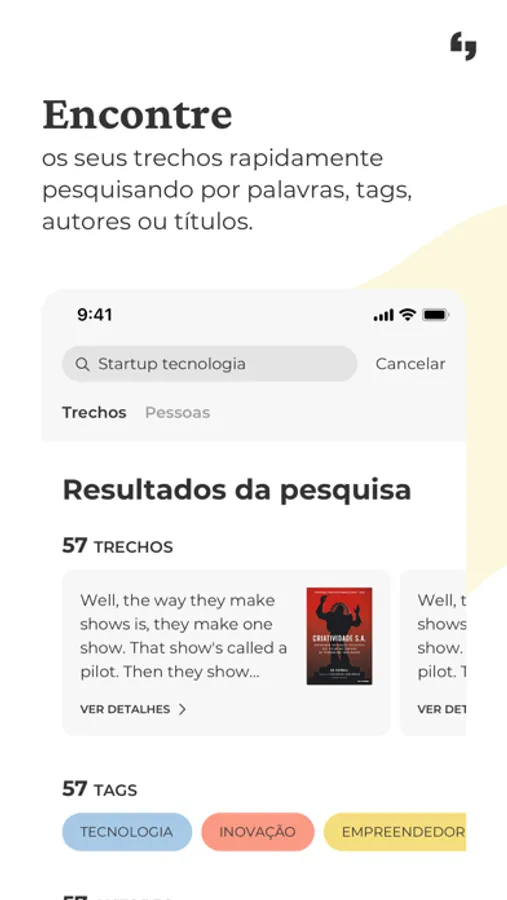 - ENCONTRAR os seus trechos rapidamente pesquisando por palavras, tags, autores ou títulos;