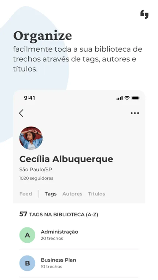 - ORGANIZAR facilmente toda a sua biblioteca de trechos através de tags, autores e títulos;