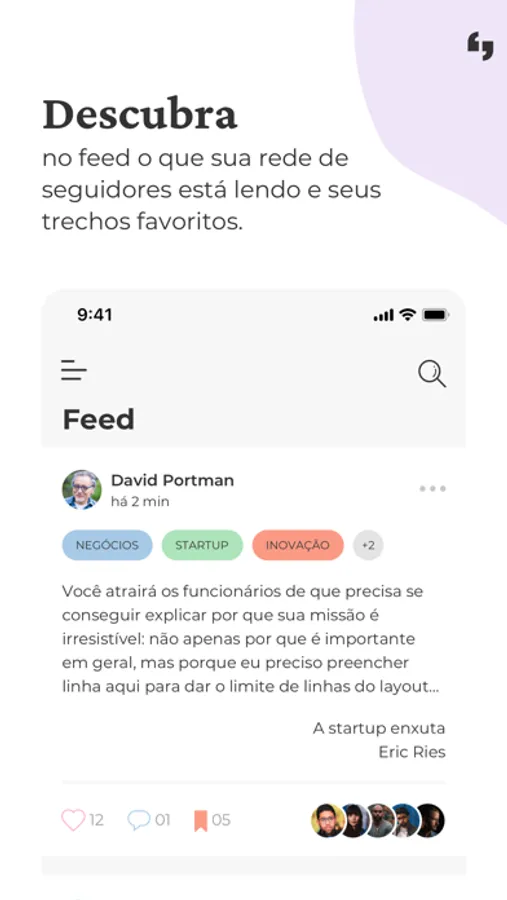 - ACOMPANHAR no feed o que seus amigos estão lendo e seus trechos favoritos;