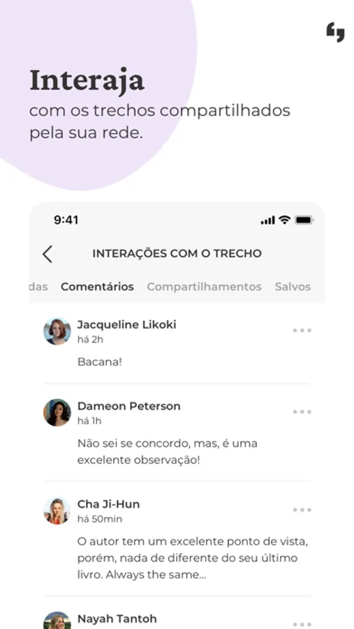 - INTERAGIR com os trechos compartilhados por outras pessoas;
