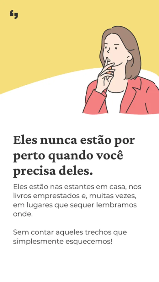 A maioria deles nunca está por perto quando a gente precisa. Eles estão nas estantes em casa, nos livros emprestados e, muitas vezes, em lugares que sequer lembramos onde (sem contar aqueles trechos que simplesmente esquecemos)!