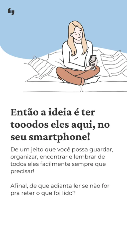 Então a ideia é ter tooodos eles aqui, no seu smartphone! De um jeito que você possa guardar, organizar, encontrar, lembrar e compartilhar qualquer um deles facilmente sempre que precisar.