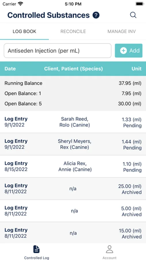 Simplified Drug Management- Documenting controlled drug inventory is a tedious process. VetSnap does real-time tracking of restocked, opened, logged, and finished containers.