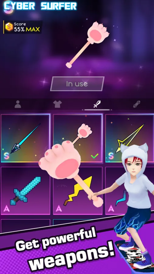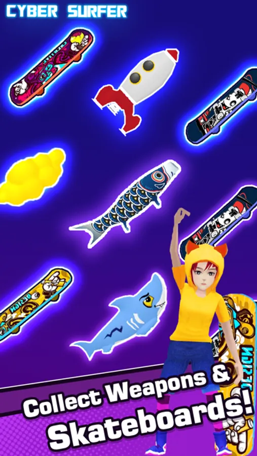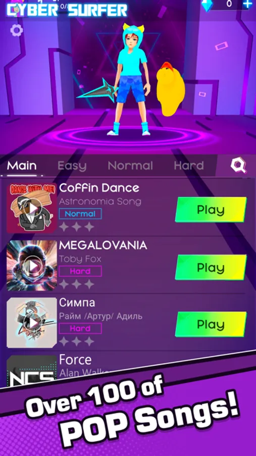 In Cyber Surfer, you can experience the music of different styles and different singers just like: Pop, Rap, EDM, Rock, JPOP, KPOP...Imagine Dragons, Justin Bieber, LiSA, BLACKPINK & BTS,FNF playlist and any song saved on your phone.