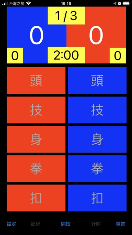 1.全部以手動計分,按鈕依照青、紅分成,頭部、身體,技術,正拳,及扣分。