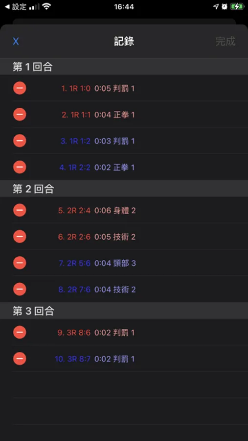 2.若有計分錯誤,可點選單筆得分記錄,取消該筆記錄並修正雙方比數。