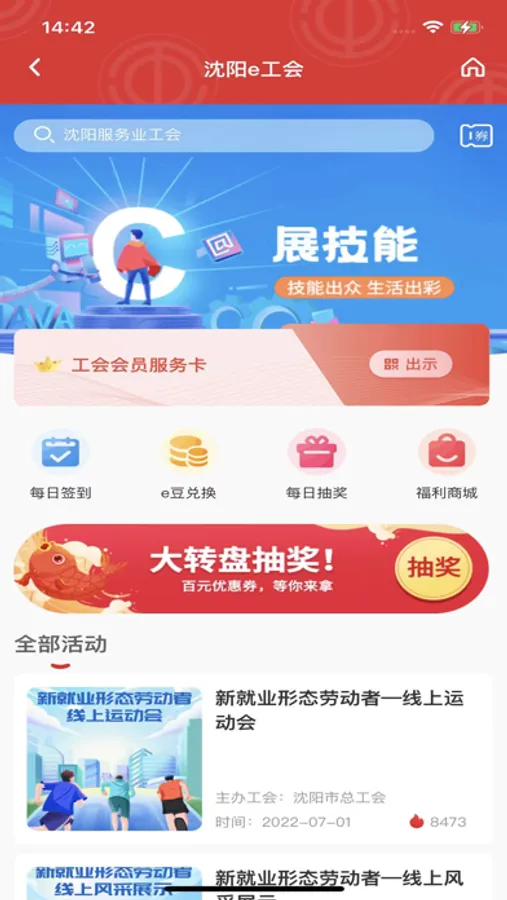 沈阳e工会,沈阳市职工会员的掌上工会。为所有职工及会员提供福利发放、活动报名、业务办理等服务。