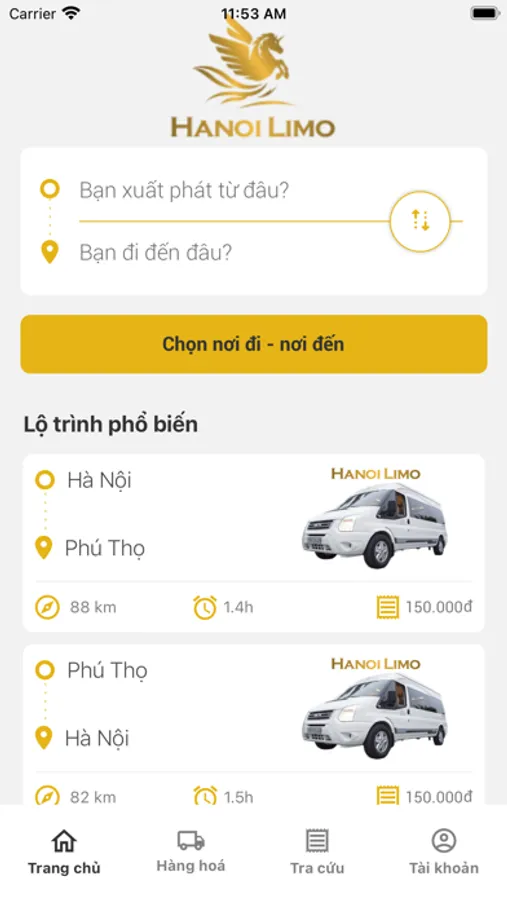 Ứng dụng đặt vé xe của CÔNG TY TNHH Hà Nội Limo giúp cho hành khách tra cứu thông tin xe trực tuyến đi tuyến Hà Nội tới các tỉnh mang lại trải nghiệm nhanh chóng và tiện lợi nhất từ việc đặt vé đến sử dụng dịch vụ vận chuyển hành khách.