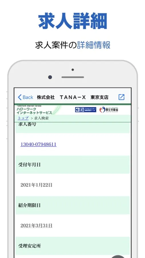 厚生労働省が運営する、就職支援・雇用促進のためのサイト(www.hellowork.go.jp)を検索・表示するためのアプリケーションです。