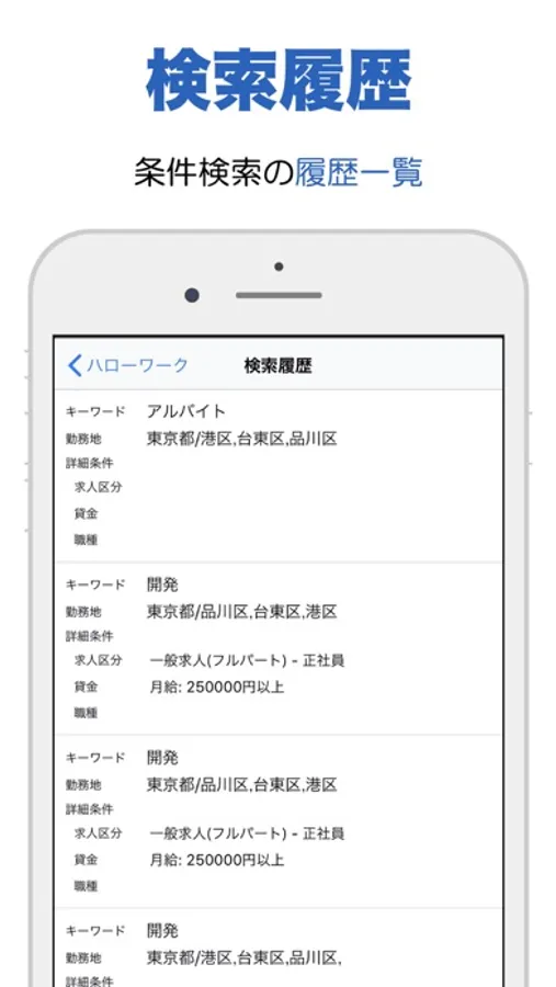 ・検索履歴から過去調べた条件を即時検索できます。