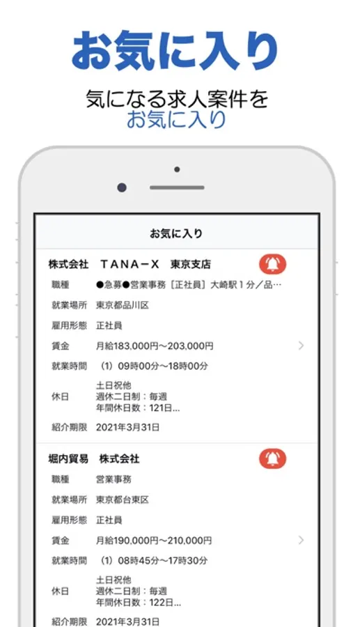 ・お気に入りを活用し、求人案件を即時確認できます。