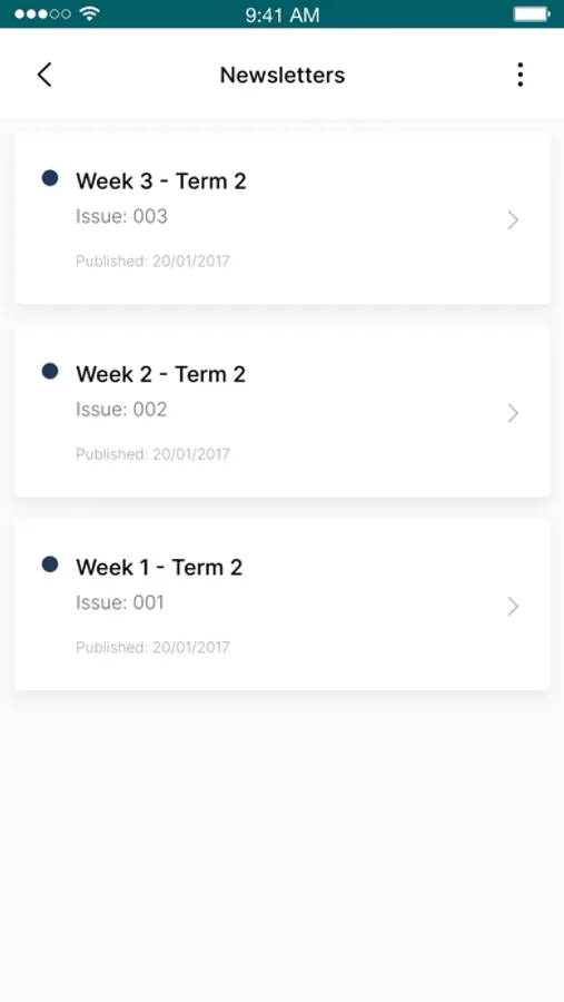 Newsletter: the Newsletter module allows Cooloola Christian College to share electronic newsletters, directly to the app