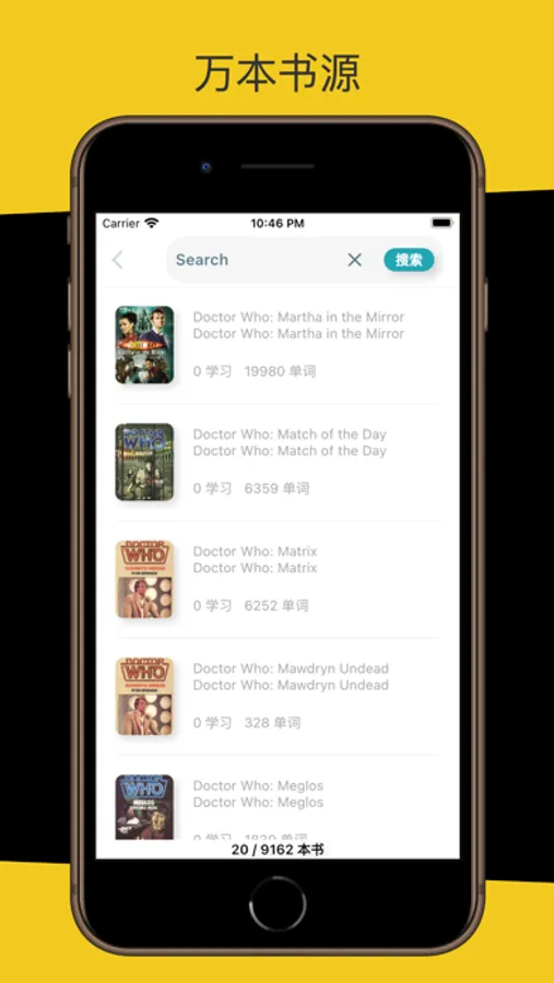 1、后台自动解析英文经典名著里的单词和短语,提供给用户预习、学习、复习。