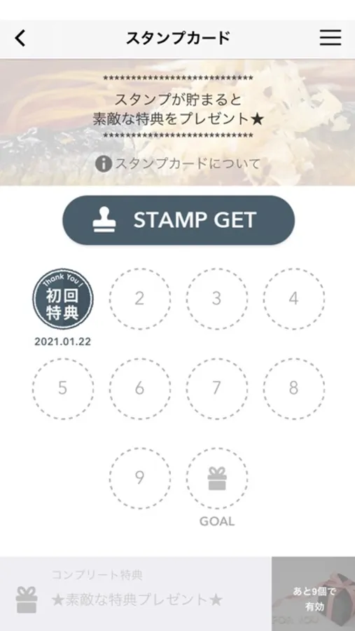 たくさん貯めていただくと次回使える特典をご用意しております。