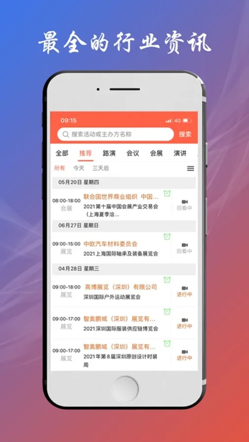 路演、会展、演讲信息一键查询,行业资讯实时查看。