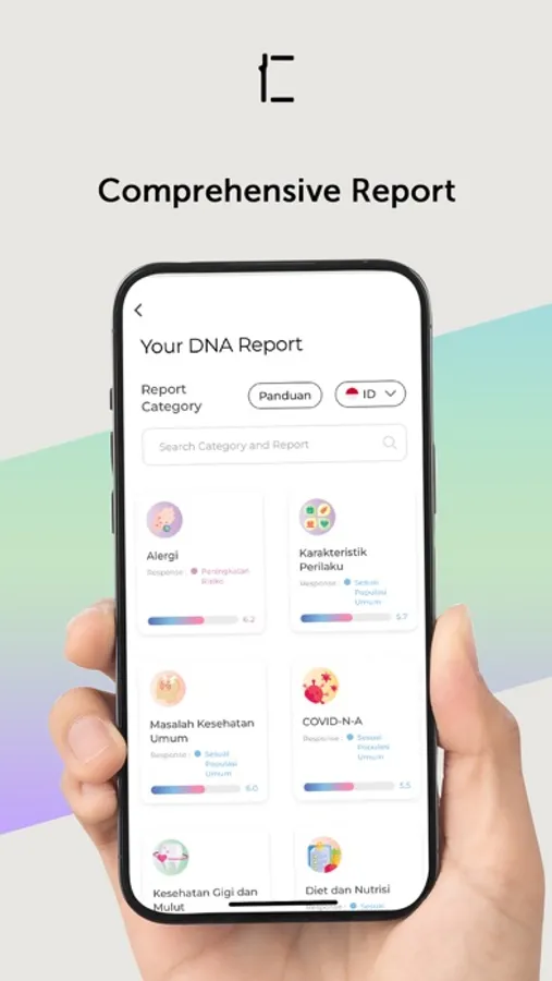 Kami menawarkan jenis kategori report sesuai dengan kebutuhan Anda. Dari report ini, anda bisa melihat hasil report beserta rekomendasi dan tips berdasarkan hasil genetik Anda.