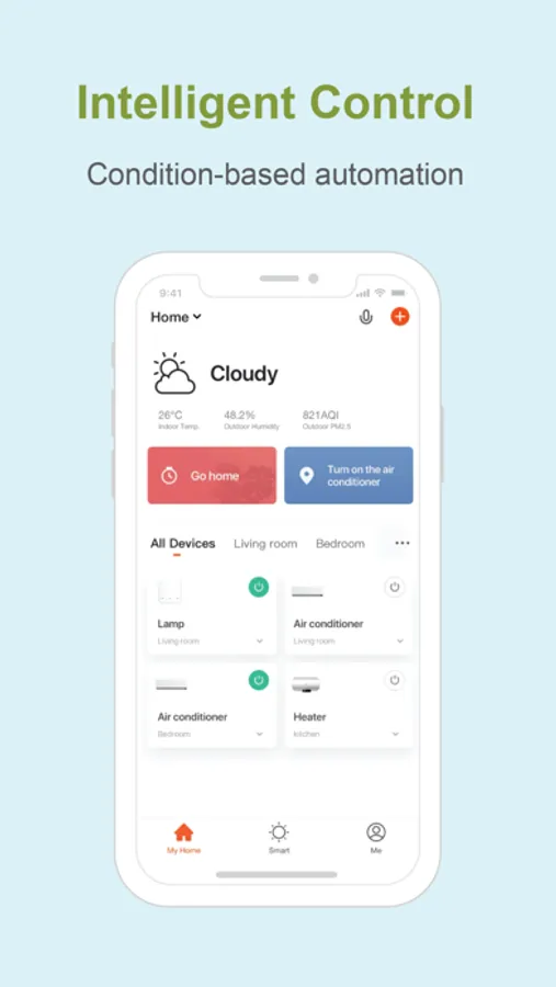 • Integrate multiple smart devices. Devices automatically start/stop working based on temperature, location, and time.