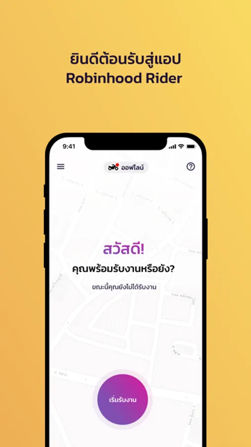 Robinhood Rider แอปพลิเคชันสำหรับคนขับรับส่งอาหารและสินค้าอื่นๆ ให้บริการโดยบริษัท เพอร์เพิล เวนเจอร์ส จำกัด ในกลุ่มเอสซีบี เอกซ์