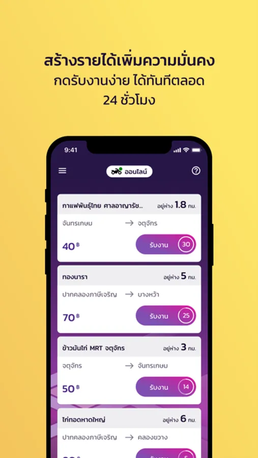 คุณสามารถรับงานได้อย่างอิสระ สร้างรายได้แบบมีเงินเข้าทุกวัน และไม่ต้องสำรองเงินจ่ายค่าอาหารพร้อมรับโปรโมชันสำหรับคนขับ และสิทธิประโยชน์ต่างๆ อีกมากมาย