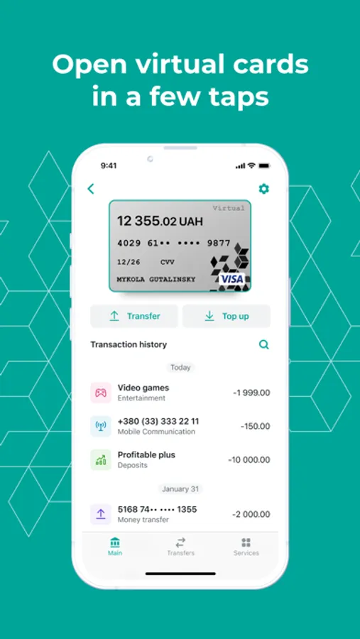 - issuance of new virtual cards with account opening (for existing bank customers);