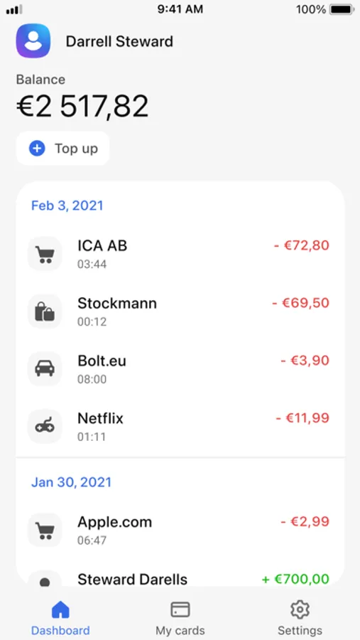 With white label app Wallester you will be able to quickly and securely launch your own card program for your customers or employees. By integrating this application with your platform, your users will be able to order virtual or physical cards and start using them right away. The app offers a wide range of features: making and receiving transfers, making payments, finance management, expenses tracking, and many more.