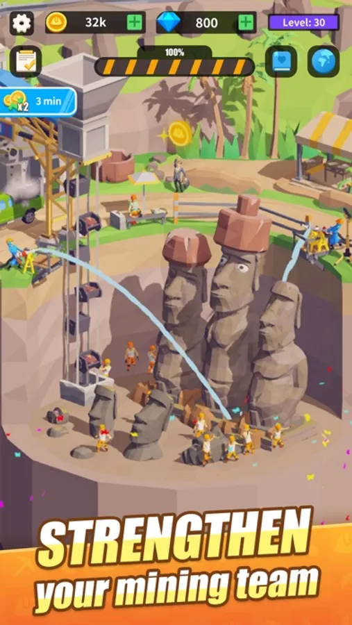 Recruit your workers and start digging! Excavate and uncover astonishing heritage sites, antiques, treasures, etc. Sell gold and diamond ore, polish your digging skills, invest like a business tycoon and hire more workers to speed up! Collect cultural relics from ancient times! Enjoy the beautiful and fascinating scenes of the historical remains!