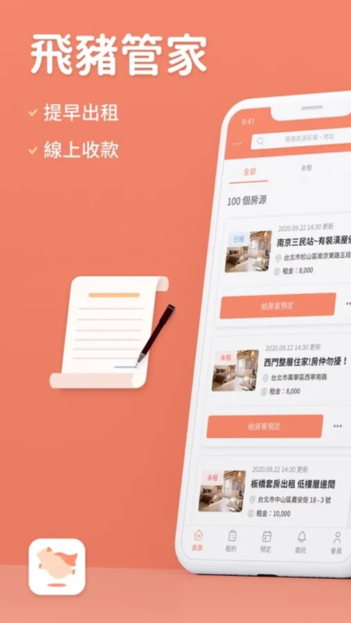 線上讓房客預定房源,定金由平台代收,毋須擔心屋客不給定金。