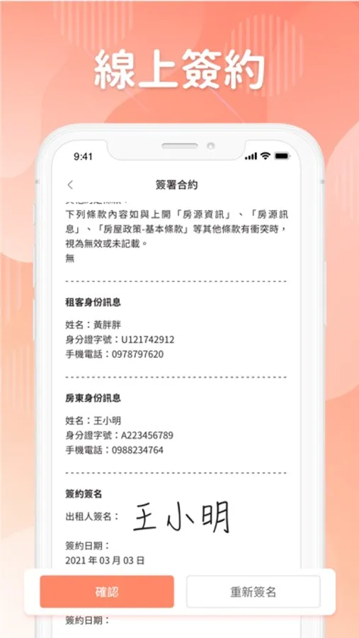 線上簽名以及具有效力的合約,讓租客屋主省時省力有保障。