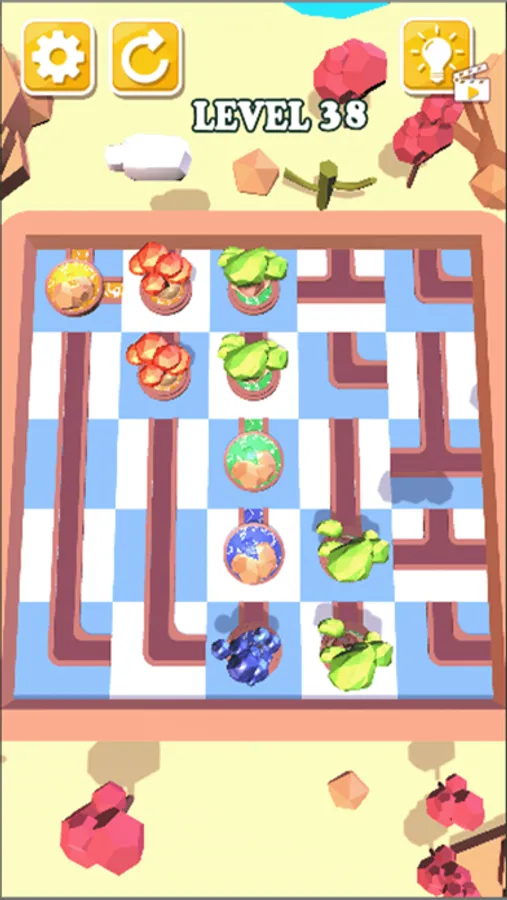By changing the direction of water on the ground, you connect water and trees. A level is completed when all the trees are watered. Pay attention to the color of the trees and the color of the water.