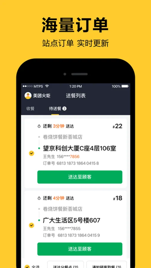 美团配送火炬系统是美团外卖转为配送员定制的配送APP,服务与广大的加盟商团队,旨在帮助配送员更好、更快地为美团外卖的商家及顾客提供配送服务。骑手在该平台上方便的接收配送订单、管理订单信息、查看数据统计等。