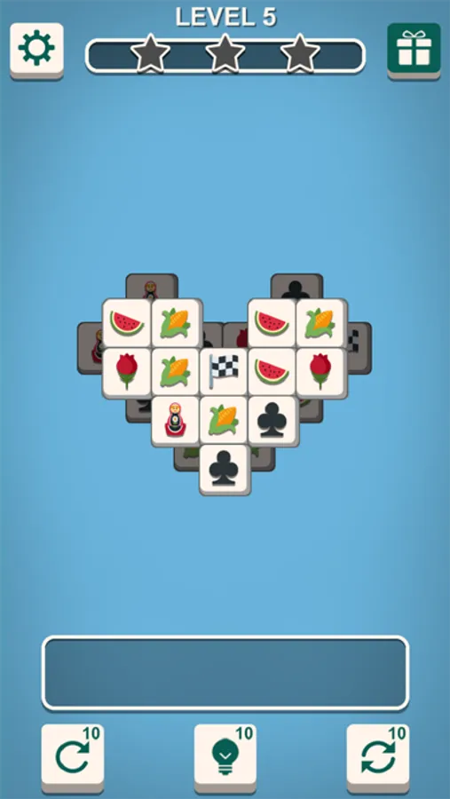 ● Match 3 same tiles to clear it.