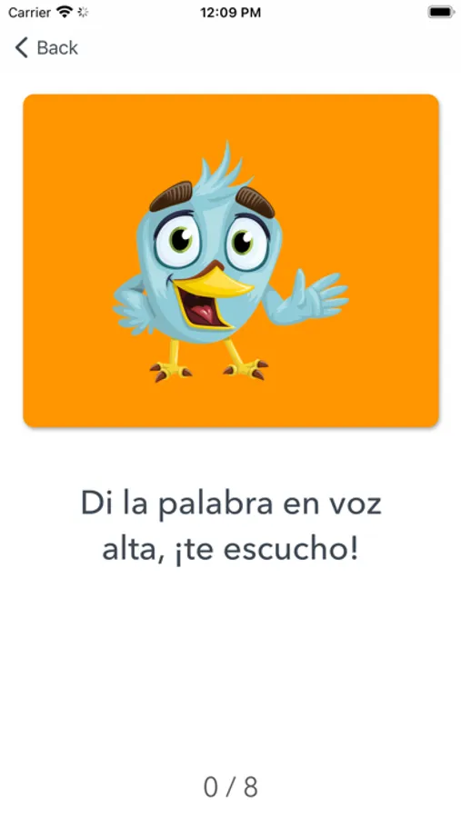 3. Enter the "Play" mode, where app presents randomised cards with recently seen words. Application actively listens for voices and confirms if correct word was said.
