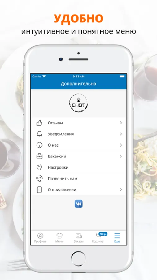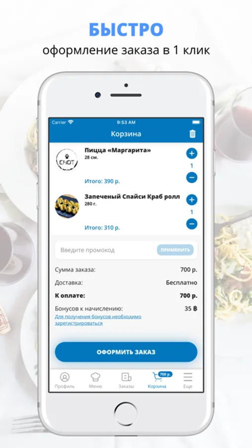 посмотреть меню и совершить онлайн-заказ,