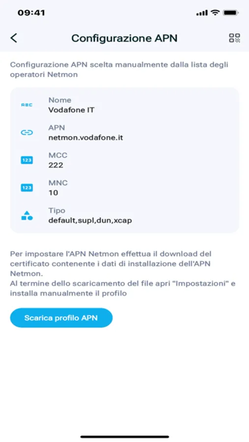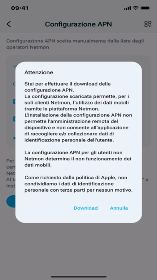 Aiuta l'utente a configurare i punti di accesso APN alla piattaforma Netmon e mantenere la corretta configurazione sul dispositivo.