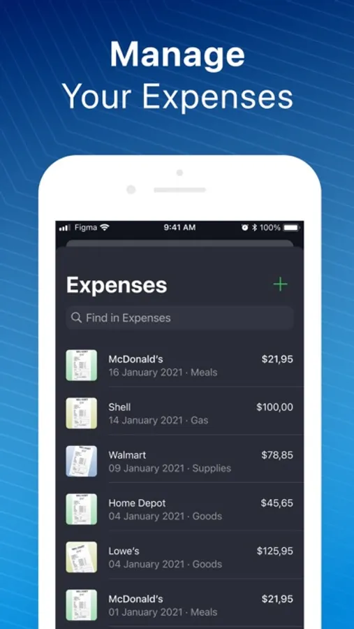 • Snap a photo of any receipt or load it from your mobile phone and receipt tracker generates expense item.