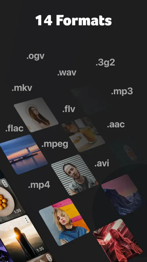 We support the following output formats: MP3, MP4, 3G2, AAC, AVI, FLAC, WAV, FLC, M4A, MPEG, MKV, OGV, OGA