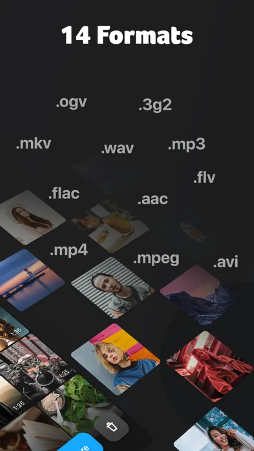 We support the following output formats: MP3, MP4, 3G2, AAC, AVI, FLAC, WAV, FLC, M4A, MPEG, MKV, OGV, OGA