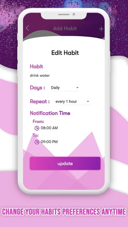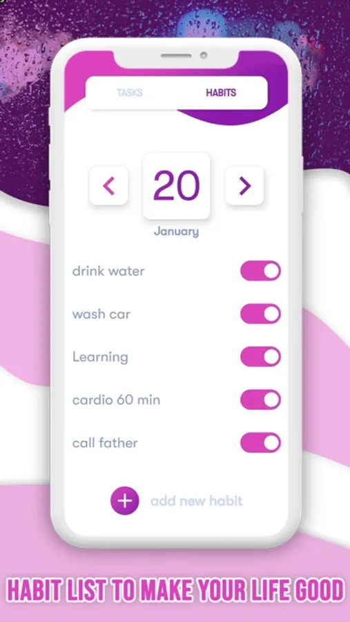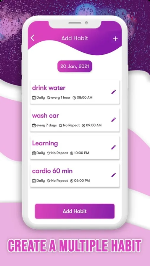 Build lasting habits with recurring due dates like “Daily, every 3 days, every 7 days, etc..” with reminder time like “every 30 minutes, every 1 hour, etc.. ”. Can Start and Stop getting a reminder by switching on and off. Can get a reminder easily by just selecting start time and time for a day. Our main feature is, You can add multiple habits for the same day. You can make a Habit easily with Todo list, Habit Tracker, Reminder, Task list. It will give a habit reminder to six months.