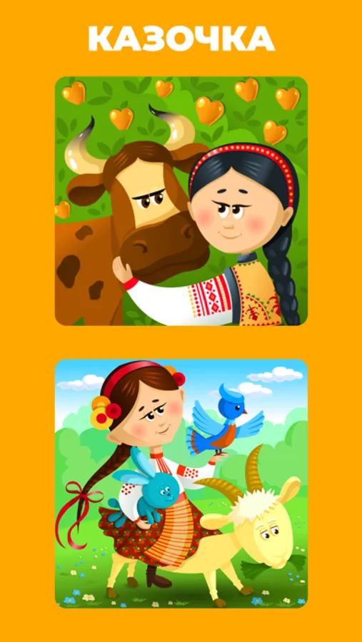 Додаток містить шість збірок із оповідками за мотивами українських народних казок, озвучених вашими улюбленими акторами. Ці захопливі, веселі і повчальні історії проведуть дитину стежками минулого, магії та легенд. Створенні з любов’ю авторські ілюстрації та музика додають настрою та колориту.