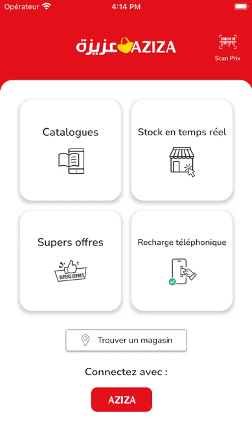 Téléchargez l'application AZIZA et restez au courant des promotions et des nouveautés proposées. Trouvez des magasins dans votre région en quelques secondes et consulter la disponibilité des produits arriva en temps réel. Créer votre liste de courses pour y pouvoir se rappeler lors de votre visite, tous les jours à bas prix !