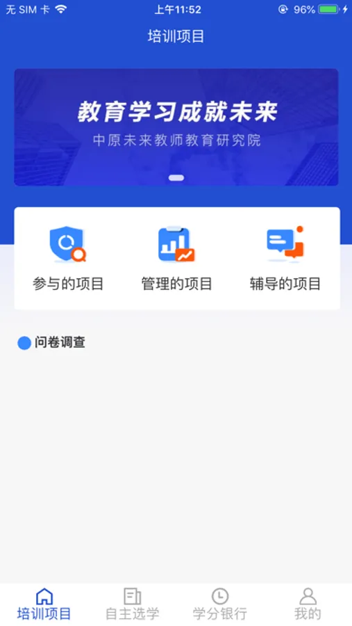 【培训项目】可分类查看参与的、管理的、辅导的项目以及项目关联问卷调查相关信息