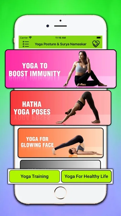 - There are two main categories inside the Yoga Posture & Surya Namaskar app.