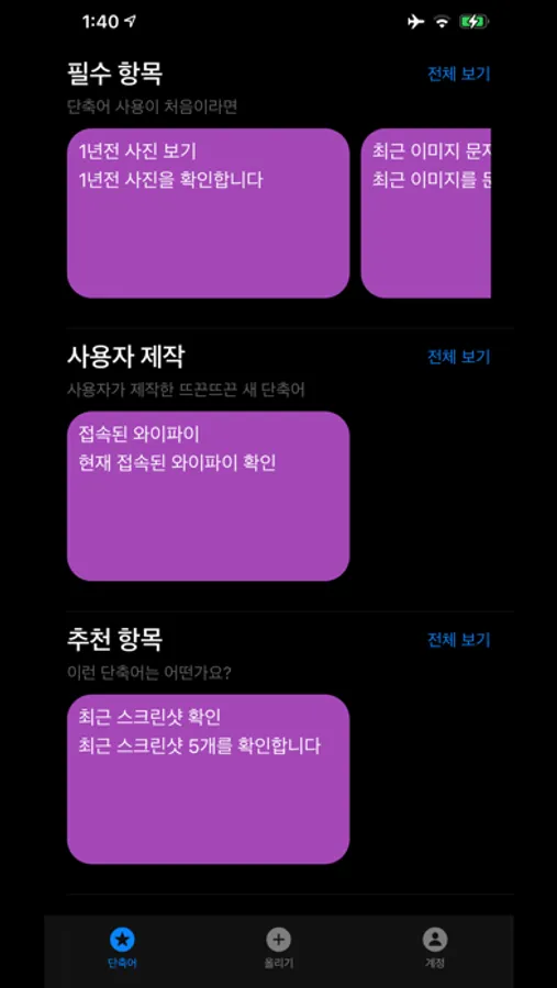 내 단축어 앱은 내가 사용하는 단축어를 공유할 수 있습니다.
