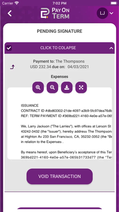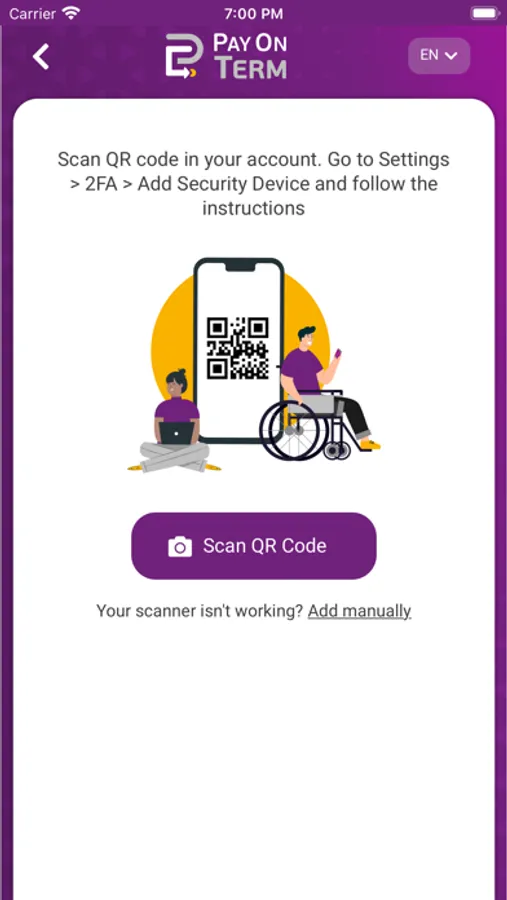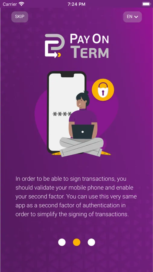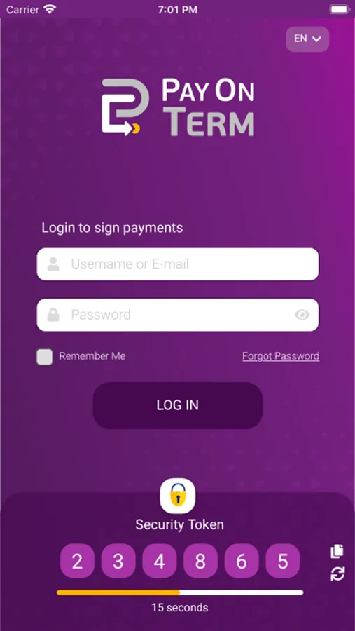 PayOnTerm is a payments platform that introduces a new concept in the way of paying: Term Payments. They grant flexibility and automation to payment and collection, becoming a product for companies and proprietorships alike. A Term Payment is a deferred payment issued on a specific date that will be due in a future date. It establishes a payment obligation in the future that may not be revoked. It is supported by the digital signing of a contract between the parties, instrumented by our platform in a simple and automatic way. Therefore, users may access our mobile app in order to add a second factor authentication method (TOTP) and digitally sign contracts.