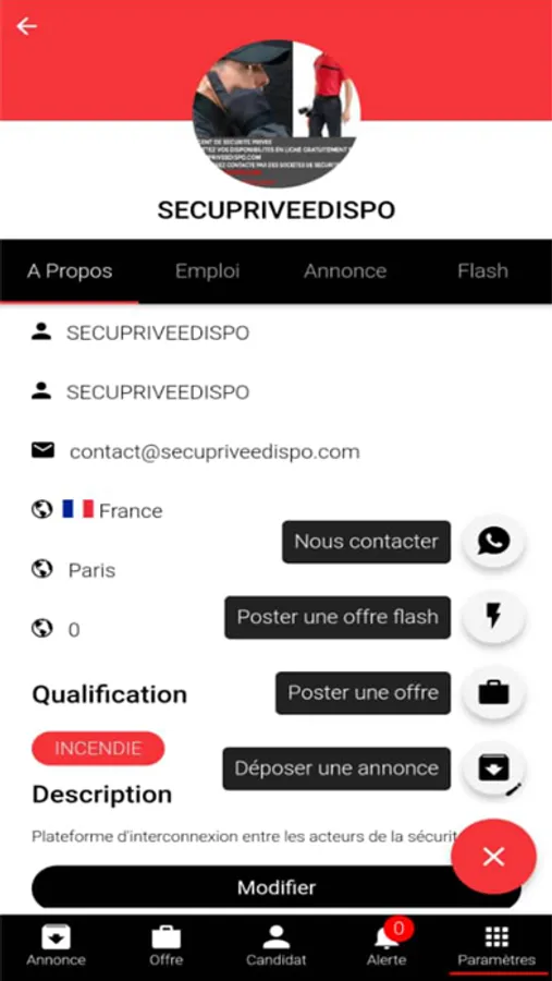 SECUPRIVEEDISPO est un site d’interconnexion entre les différents acteurs de la sécurité privée. L’objectif est de simplifier la tâche de ses différents membres en leur permettant de trouver en un seul clique la solution à leur besoin. Ainsi une société de sécurité peut trouver en un clique un agent de sécurité disponible dans la zone souhaitée. Un centre de formation peut également trouver en ligne un jury d’examen ou un formateur. Les particuliers et les entreprises ont la possibilité de trouver en ligne une formation ou une société de sécurité qui correspond à leurs attentes.