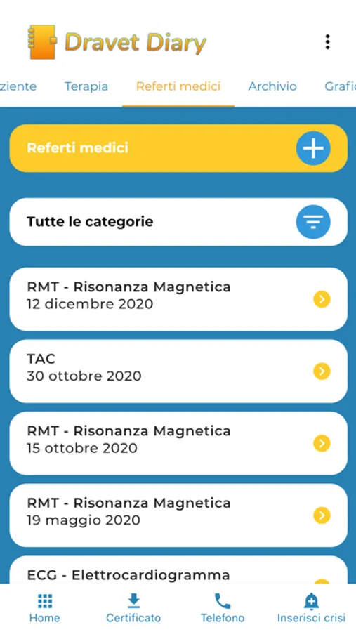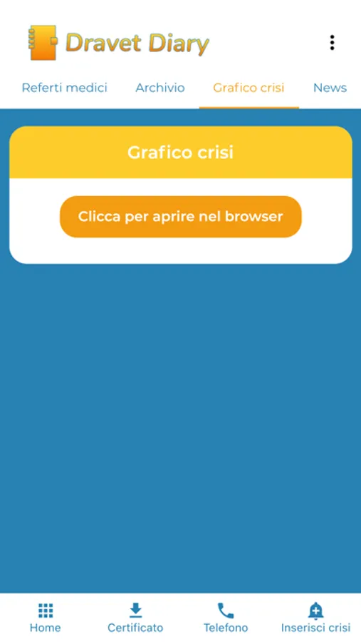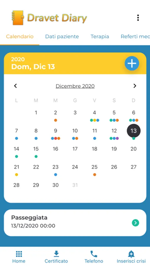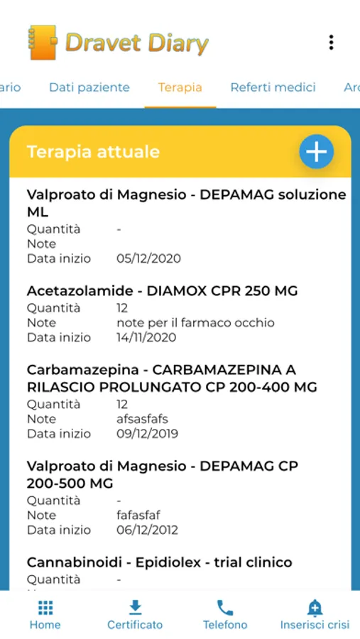 The Diary is a tool that allows you to record and document in detail the crises that occur, how often, during which therapy, the state of health of the subject at that time and other useful information.